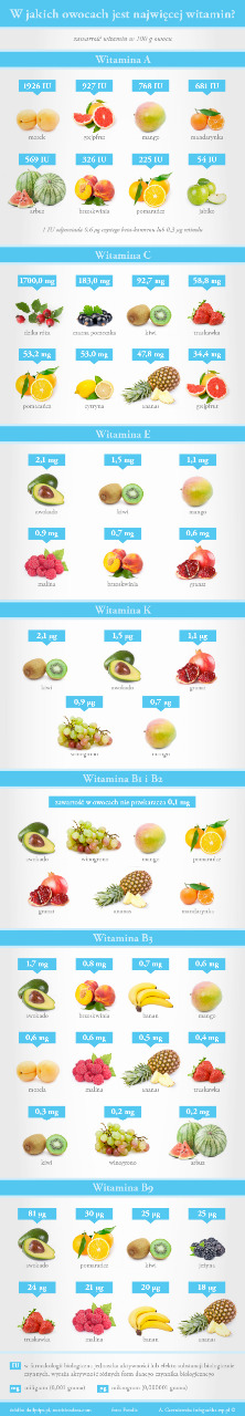 Witaminy są grupą organicznych związków chemicznych o różnorodnej budowie, Witaminy są niezbędne do prawidłowego funkcjonowania organizmu. Te związki organiczne wpływają na działanie wszystkich układów naszego ciała, regulują wydzielanie hormonów, odpowiadają za prawidłową kondycję skóry czy wspomagają metabolizm. Ich niedobór prowadzi do wielu poważnych chorób, dlatego bardzo ważne jest, aby codziennie spożywać wiele produktów bogatych w witaminy. W jakich owocach znajdziemy ich najwięcej?